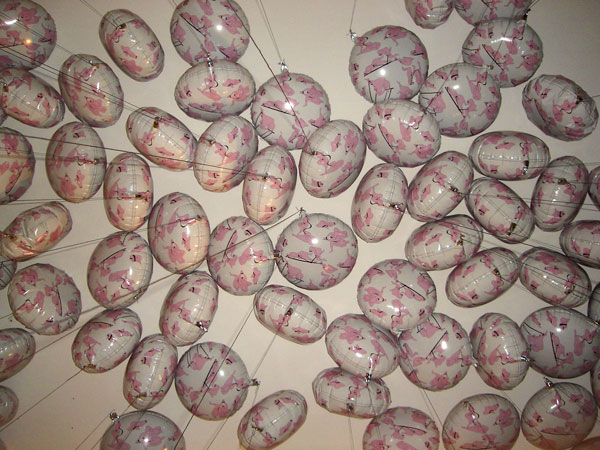 Die in Offenbach lebende iranische Künstlerin Parastou Forouhar arbeitet konzeptuell. Sie schafft raffinierte, elegante Muster – doch der Inhalt zeigt Gewalt. Die Installation Ich ergebe mich (2007 / 2011) besteht aus mit Helium gefüllten Ballons, die luftig-schwebend an der Decke hängen. Doch wer genau hinschaut, sieht sich mit Folterszenen konfrontiert. Diese Arbeit, die aus Anlass der Ausstellung luftig...flüchtig mit finanzieller Unterstützung der Sparkasse Freiburg neu aufgelegt wird, wird in Freiburg zusätzlich einige Wochen lang an verschiedenen Orten im öffentlichen Raum gezeigt. Parastou Forouhar bei "Stimmen aus dem Iran" auf arte