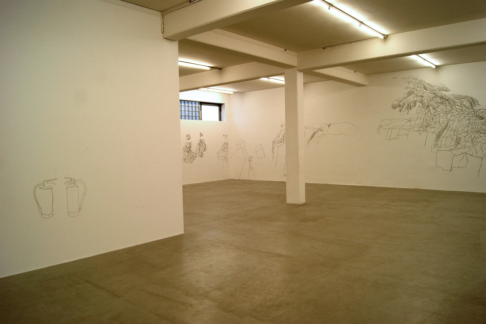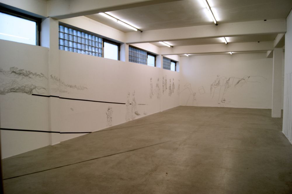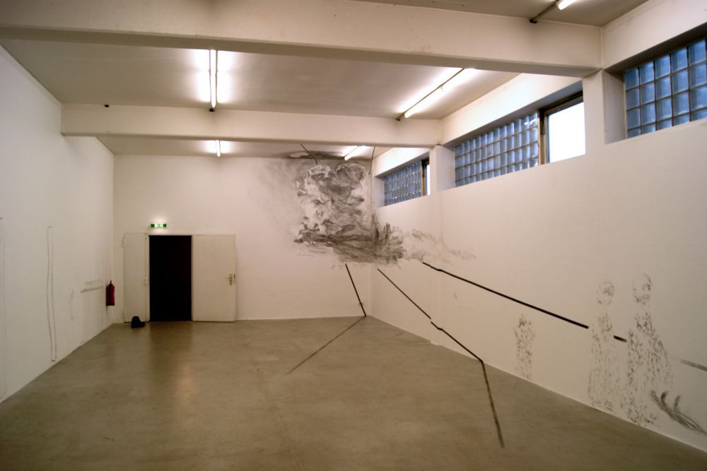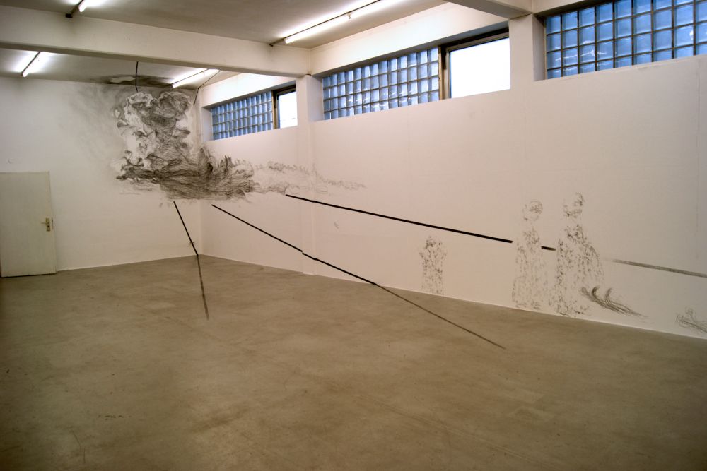 In der aktuellen Ausstellung des Kunsthaus L6 stellen sechs Künstlerinnen aus, die in großformatigen Zeichnungen direkt auf der Wand arbeiten. Dabei werden sie mit der Struktur der Wand konfrontiert, die durch langjähriges Streichen und Verspachteln sowie Rissen einen gewohnt zielgerichteten Strich verhindert.
