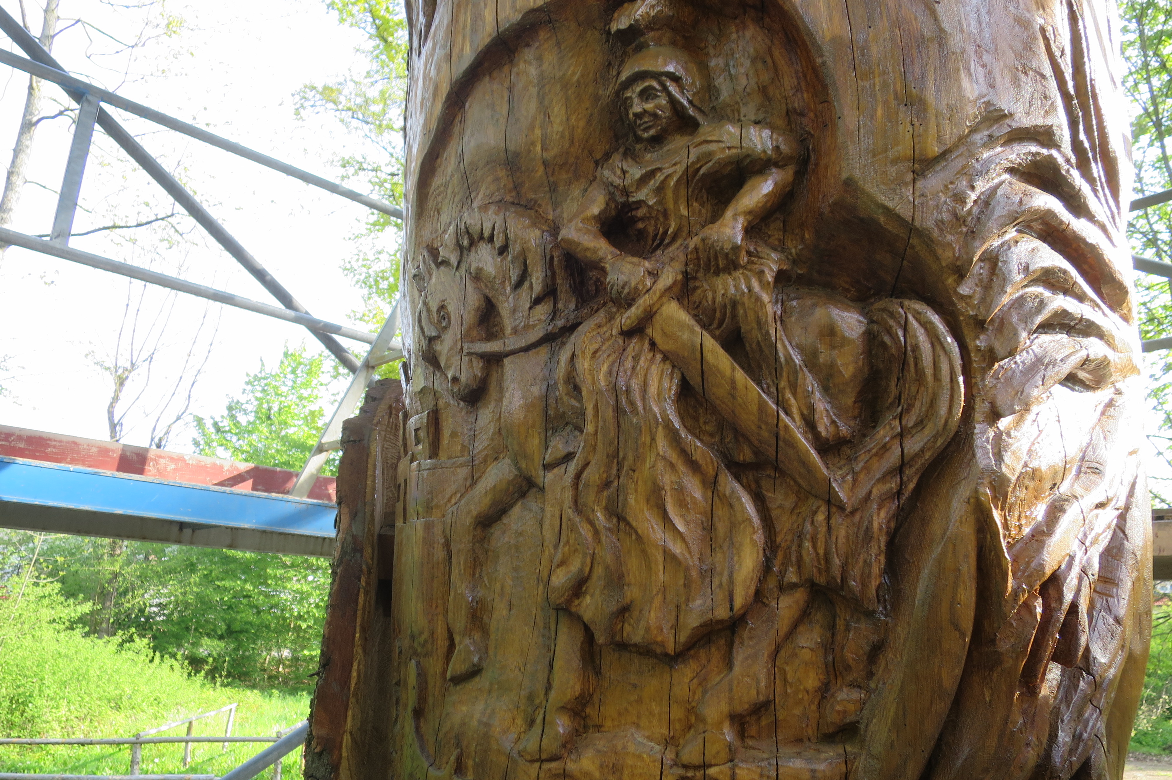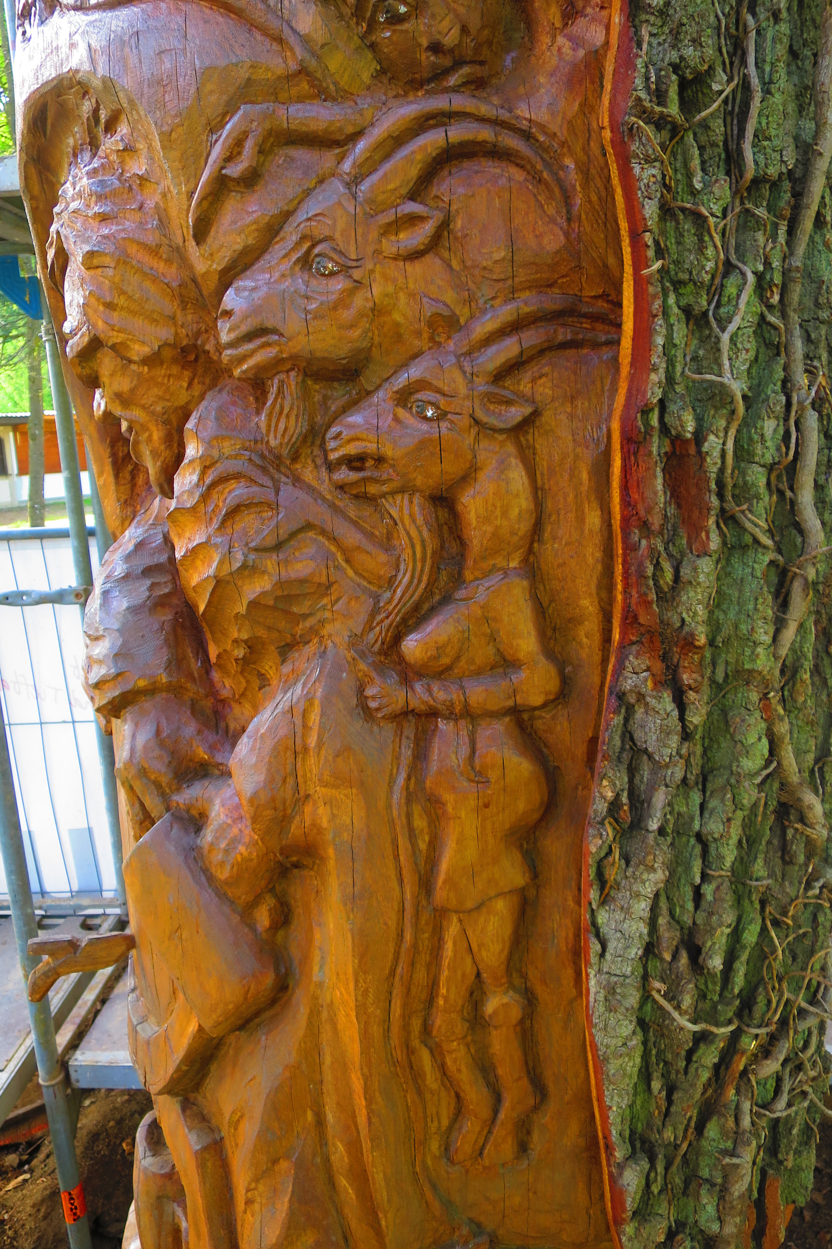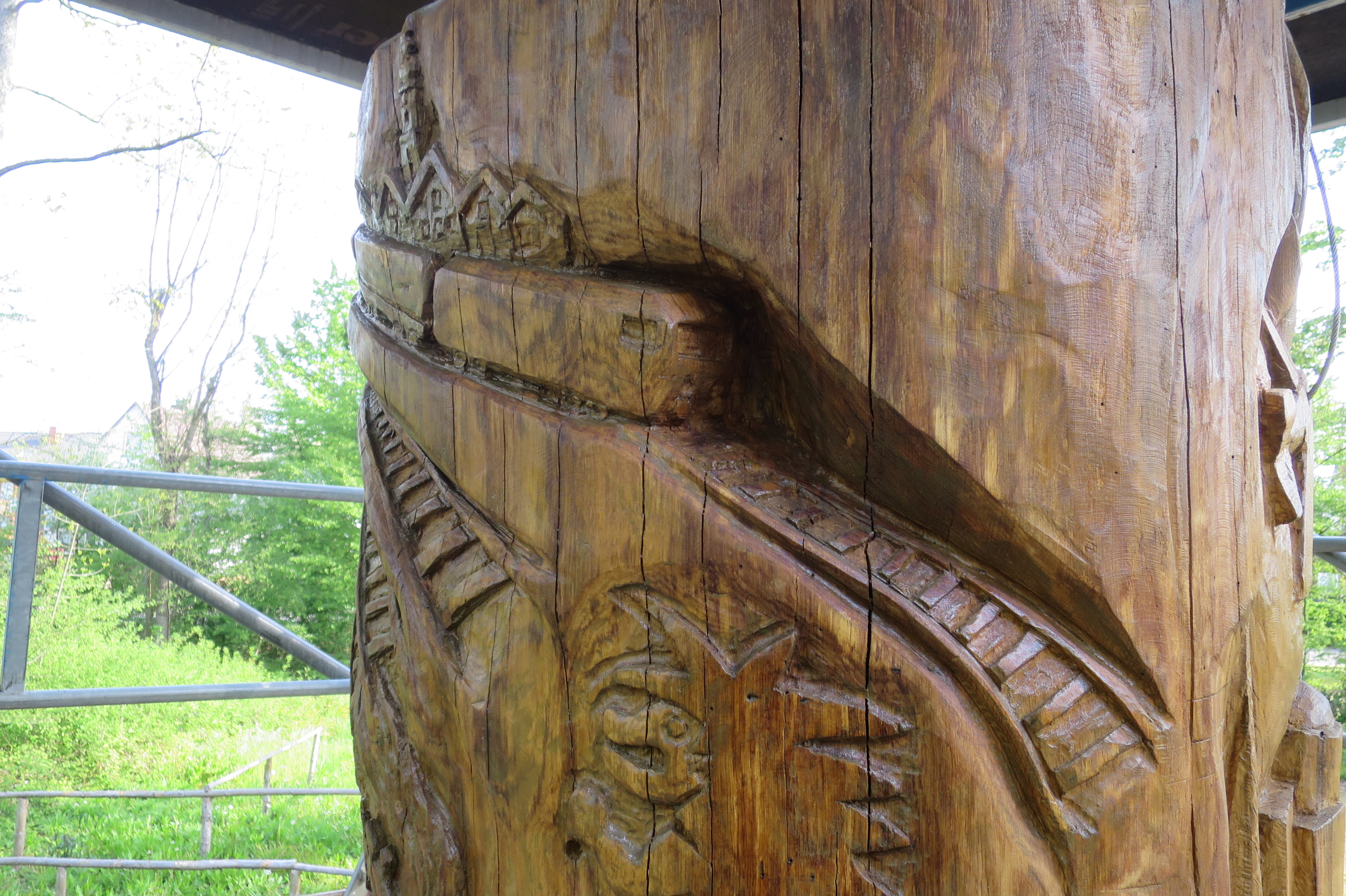 Ein besonderer Dank gilt dem städtischen Forstamt (verewigt in dem kleinen Jäger an der Südseite der Skulptur), das Mittel und Wege gefunden hat, diese Baumstammskulptur möglich zu machen, sowie der Jugendfeuerwehr, ohne die die Erde in den „Wurzelhaaren“ der Skulptur sicher für manche Überraschung sorgen würde und an eine Firma aus dem Gewerbegebiet, die die Aufstellung und Absperrung der Skulptur großzügig unterstützt hat. Und – natürlich – an den Künstler Thomas Rees, der alle Anregungen, die ihn anfl ogen, in vollendeter Weise aufgenommen und umgesetzt hat.