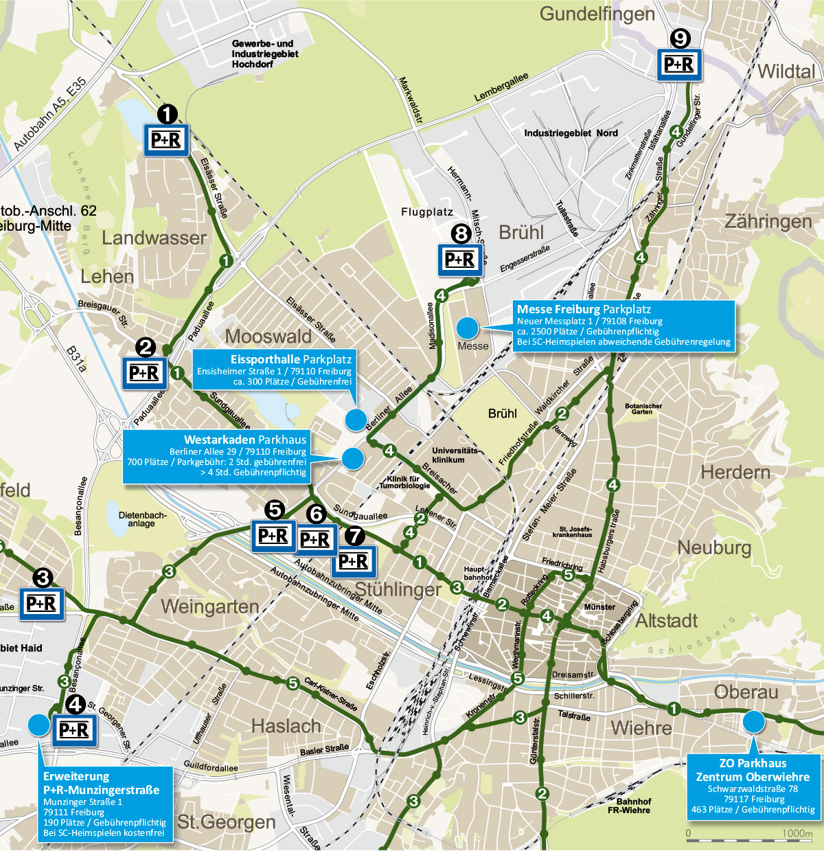 Weitere Informationen zum P+R finden Sie auch bei der Freiburger Verkehrs AG unter www.vag-freiburg.de/park-ride.